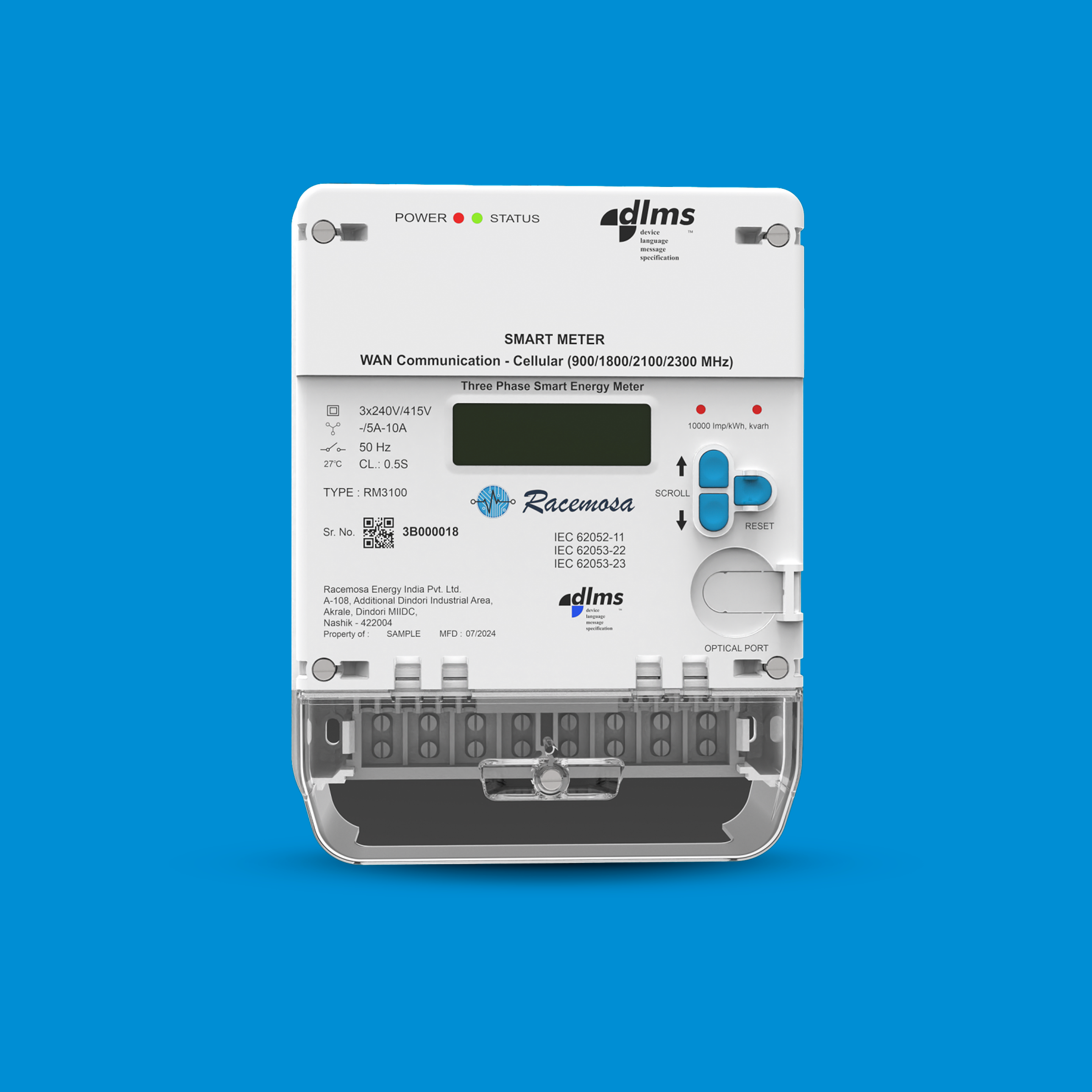 Three phase CT-Operated (CT Type) static smart energy meter with AMR/AMI capabilities, DLMS compliant and modular communications. RM-3100 is an excellent product for consumers with three phase four wire connection. The meter operates in completely static mode and provides full features for Advanced MeteringInfrastructure solutions.